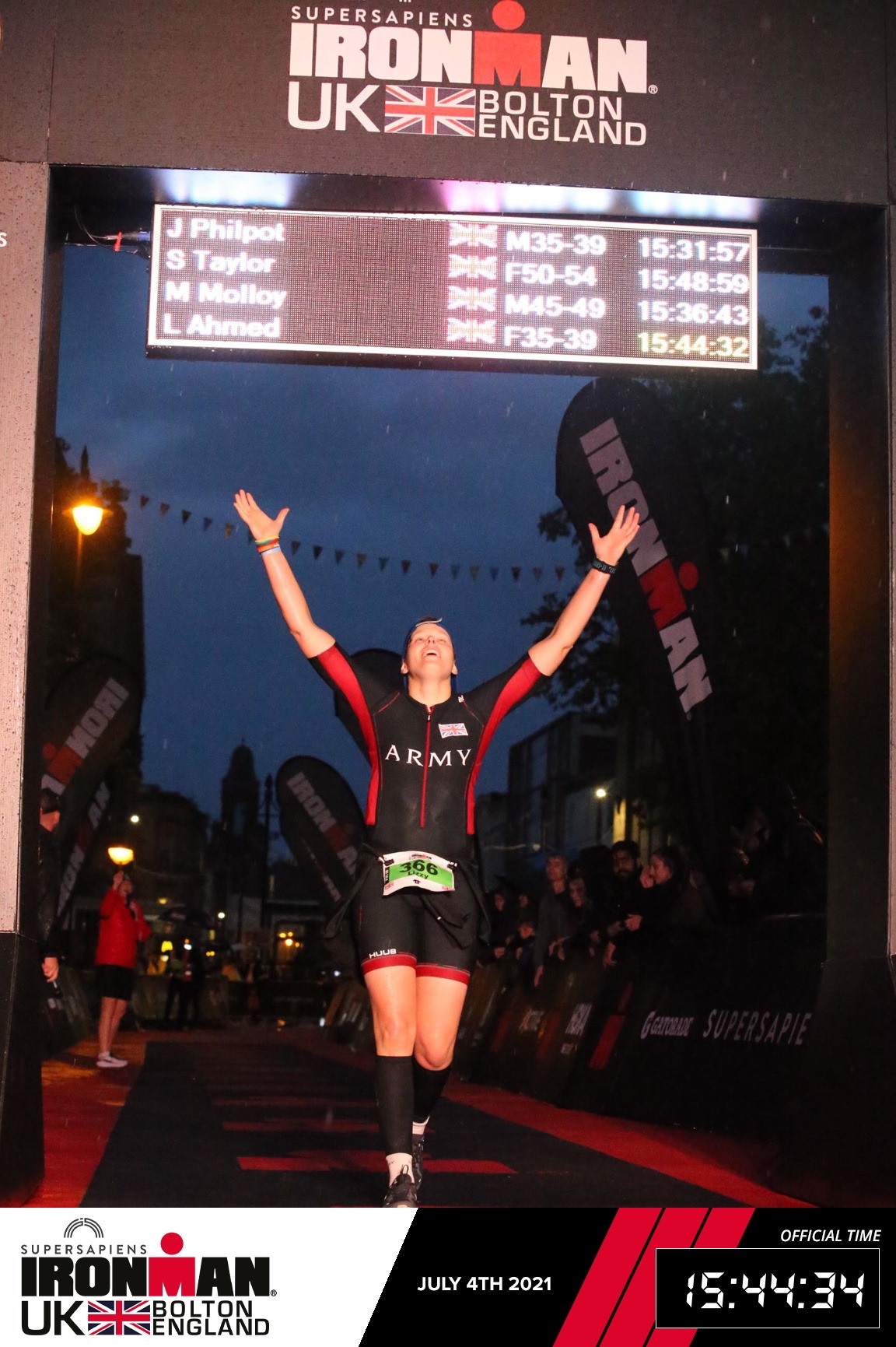 Making it to T2 and making the cut off was such a good feeling as it had been the cause of so much anxiety for 3 years. However, nothing will ever beat that feeling you get running down the red carpet hearing ‘Lizzy you are an Ironman!’